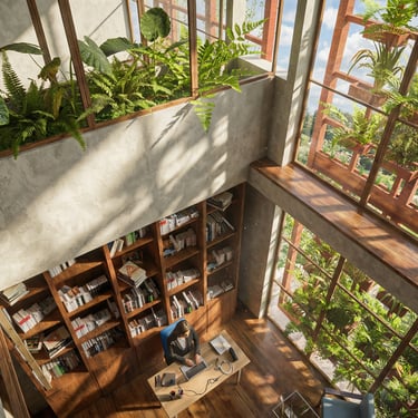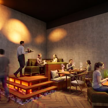 Transformamos un espacio genérico en un refugio andino rentable. Optimizamos cada metro cuadrado, integrando la columna central y logrando un ambiente inmersivo y acústicamente confortable.