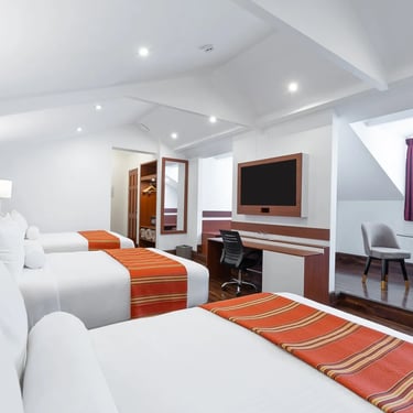Lideramos toda la gestión administrativa y restauramos la casona patrimonial de la fachada. Implementamos una estrategia rigurosa de control de ruidos y habilitamos habitaciones de lujo con los estándares exigidos para un hotel de 4 estrellas.